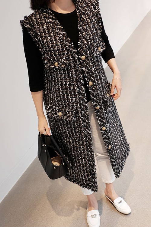 Tシャツからタートルセーターまで インナーしだいでカジュアルにもエレガントにも着こなせて、 シンプルコーデのおしゃれ間が増すお役立ちアイテム 組み合わせやすい黒ベースのツイードとゴールドボタン 商品番号 G209-01 ■カラー ブラック ■サイズ(cm) バスト 着丈 S 94 95 M 98 95 L 102 96 XL 106 97 2XL 110 97 〇サイズは採寸方法により1-3㎝ほど誤差がある場合がございます。 ■送料 15,000円以上のご購入で送料無料とさせていただきます。 ■商品発送について 当店の商品は海外からのセレクト商品となります。 到着まで10日~20日程度いただいています。 ご入金確定後商品を確保し検品発送いたします。 在庫切れの際は速やかにご返金させていただきます。 【商品に関する注意点】 ・お手持ちのパソコン機器及びモニタなどの違いより商品のお色に若干の差がございます。 ・サイズは買付け先の生産表記ですが測り方により1-3㎝ほど誤差がある場合がございます。 ・日本の通常サイズより小さいものもございます。サイズ表記をご確認の上ご注文下さい。 ------------------------------------------------------------------------ ご購入の前に必ずショップ情報をご確認くださいませ https://graces.fashionstore.jp/about ------------------------------------------------------------------------