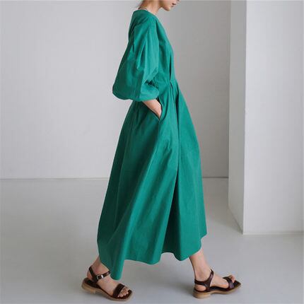 ふんわりシルエットが女性らしいボリュームフレアワンピ 高めにウエストマークしてスタイル良く上品な印象に見せます デコルテラインがすっきり見えするVネックあきが大人っぽい1枚 バルーンスリーブもアクセントになっています ■商品コード W210316 ■カラー グリーン オレンジ ベージュ ブラック ■サイズ(cm) S 総丈:115 胸囲:100 M 総丈:116 胸囲:104 L 総丈:117 胸囲:108 XL 総丈:118 胸囲:112 〇サイズは採寸方法により1-3㎝ほど誤差がある場合がございます。 ■素材 コットン混紡 ■送料 15,000円以上のご購入で送料無料とさせていただきます。 ■商品発送について 当店の商品は海外からのセレクト商品となります。 到着まで10日~20日程度いただいています。 ご入金確定後商品を確保し検品発送いたします。 在庫切れの際は速やかにご返金させていただきます。 【商品に関する注意点】 ・お手持ちのパソコン機器及びモニタなどの違いより商品のお色に若干の差がございます。 ・サイズは買付け先の生産表記ですが測り方により1-3㎝ほど誤差がある場合がございます。 ・日本の通常サイズより小さいものもございます。サイズ表記をご確認の上ご注文下さい。 -------------------------------------------------- ご購入の前に必ずショップ情報をご確認くださいませ https://graces.fashionstore.jp/about --------------------------------------------------