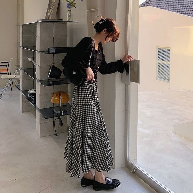 【▼動画あり▼】 ギンガムチェック柄がレトロムードを引き立たせるスカート 高めの位置で切り替えたフレアシルエットがポイントです 広がり過ぎない程よいラインで腰回りをカバーしスッキリと見せます 普段のスタイリングに合わせるだけでグッとお洒落度が上がる1枚です ■商品コード S210317 ■カラー ブラック ■サイズ(cm) Free ウエスト:60-90 スカート丈:82 〇モデル 163㎝ 45㎏ 〇サイズは採寸方法により1-3㎝ほど誤差がある場合がございます。 ■送料 15,000円以上のご購入で送料無料とさせていただきます。 ■商品発送について 当店の商品は海外からのセレクト商品となります。 到着まで10日~20日程度いただいています。 ご入金確定後商品を確保し検品発送いたします。 在庫切れの際は速やかにご返金させていただきます。 【商品に関する注意点】 ・お手持ちのパソコン機器及びモニタなどの違いより商品のお色に若干の差がございます。 ・サイズは買付け先の生産表記ですが測り方により1-3㎝ほど誤差がある場合がございます。 ・日本の通常サイズより小さいものもございます。サイズ表記をご確認の上ご注文下さい。 -------------------------------------------------- ご購入の前に必ずショップ情報をご確認くださいませ https://graces.fashionstore.jp/about --------------------------------------------------