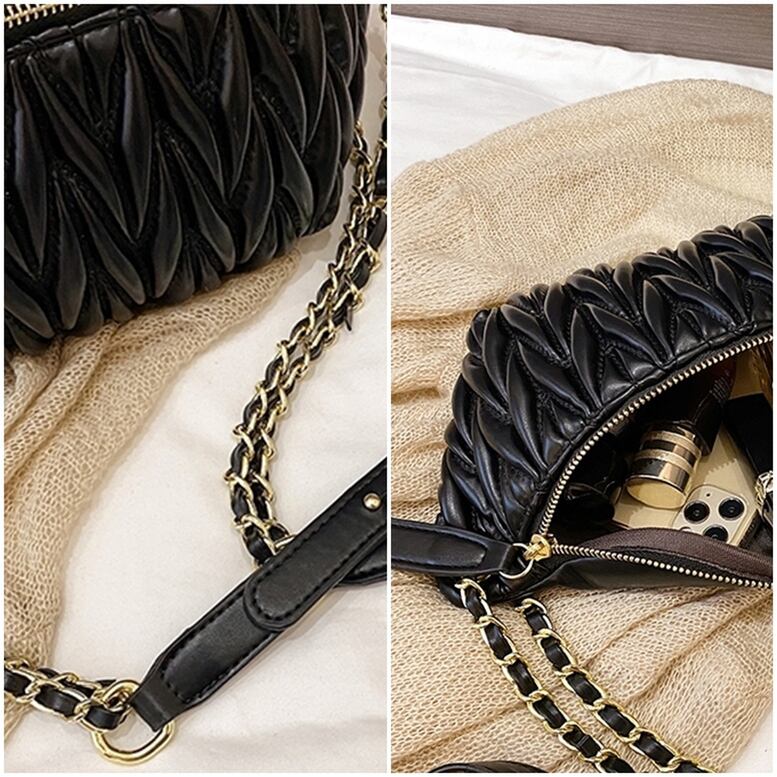 レザーキルトのフォルムが独特で表情豊かに仕上げたバッグ 斜め掛け・ワンショルダー・長さを調整してウエストポーチとしても使える3way チェーンも肩の部分はレザーなので持ちやすいです バッグ部分の幅が26センチあり見た目以上に入る大きめの仕様です ■商品コード B210334 ■カラー ブラック ホワイト ■サイズ(cm) One Size 幅:26 高さ:14 マチ:7 ストラップ:110 重さ:0.38kg ■素材 PU合皮 ■送料 15,000円以上のご購入で送料無料とさせていただきます。 ■商品発送について 当店の商品は海外からのセレクト商品となります。 到着まで10日~20日程度いただいています。 ご入金確定後商品を確保し検品発送いたします。 在庫切れの際は速やかにご返金させていただきます。 【商品に関する注意点】 ・お手持ちのパソコン機器及びモニタなどの違いより商品のお色に若干の差がございます。 -------------------------------------------------- ご購入の前に必ずショップ情報をご確認くださいませ https://graces.fashionstore.jp/about --------------------------------------------------
