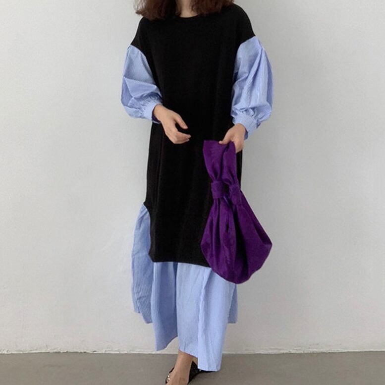 シャツの上にニットを重ねたように見せるドッキングワンピース ゆったりとした身頃でオシャレかつボディラインを拾わないのも嬉しいポイント シャツのボリュームスリーブやニット部分のスリットデザインがこなれた1枚 ■商品コード W211119 ■カラー ブルー(ストライプ) ホワイト ■サイズ(cm) Free 総丈:115 胸囲:120 肩幅:63 袖丈:44 〇サイズは採寸方法により1-3㎝ほど誤差がある場合がございます。 ■送料 15,000円以上のご購入で送料無料とさせていただきます。 ■商品発送について 当店の商品は海外からのセレクト商品となります。 到着まで10日~20日程度いただいています。 ご入金確定後商品を確保し検品発送いたします。 在庫切れの際は速やかにご返金させていただきます。 【商品に関する注意点】 ・お手持ちのパソコンやスマホ機器の違い及び写真撮影環境により商品の色の見え方に差が生じる場合がございます。 ・サイズは買付け先の生産表記ですが測り方により1-3㎝ほど誤差がある場合がございます。 ・海外発送のセレクト商品のためお客様都合によるキャンセル・返品は承っておりません。サイズ等ご確認の上ご注文下さい。 ・簡易包装にてお送りしております。予めご了承ください。 -------------------------------------------------- ご購入の前に必ずショップ情報をご確認くださいませ https://graces.fashionstore.jp/about --------------------------------------------------
