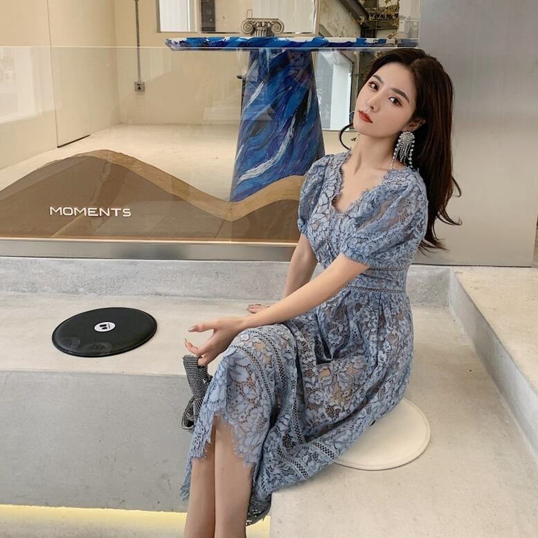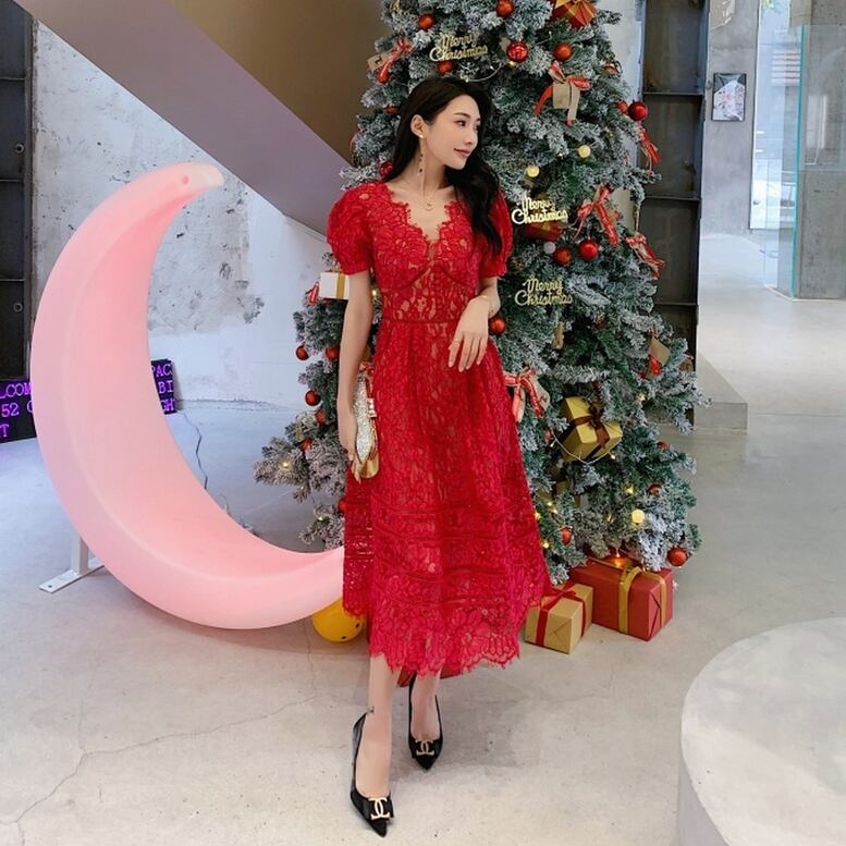 【動画】総レースウエストマークドレス