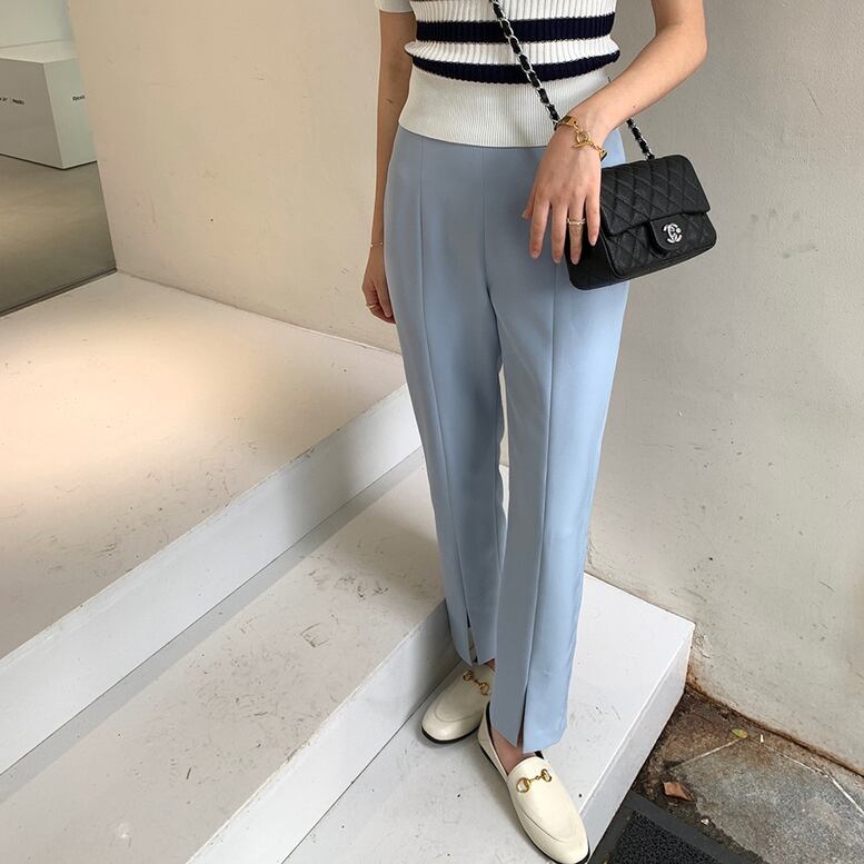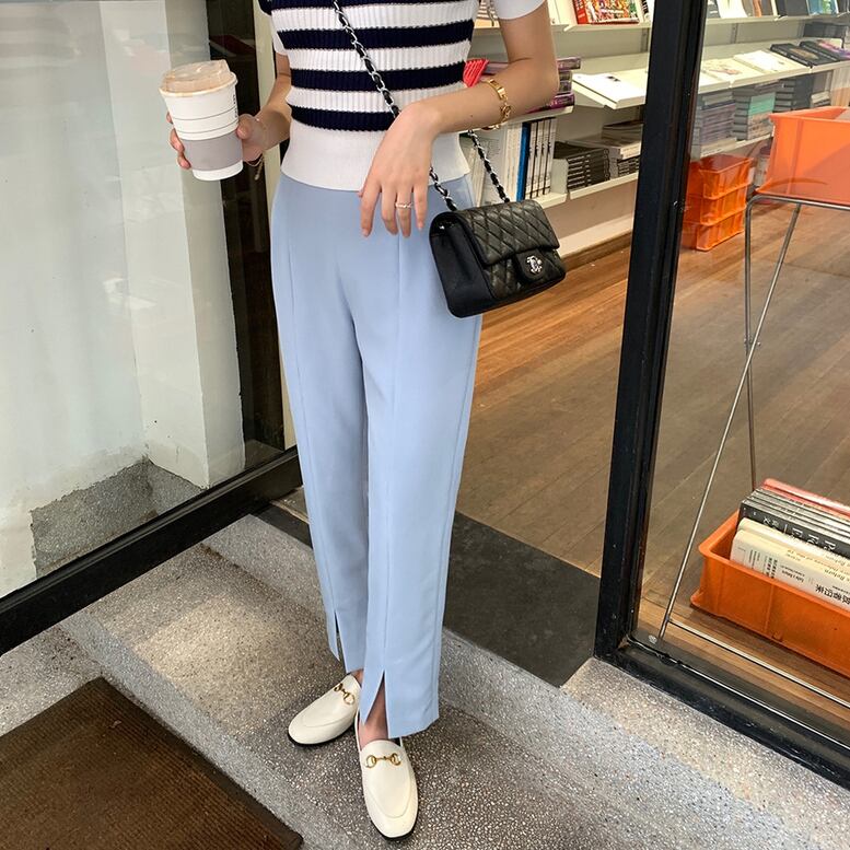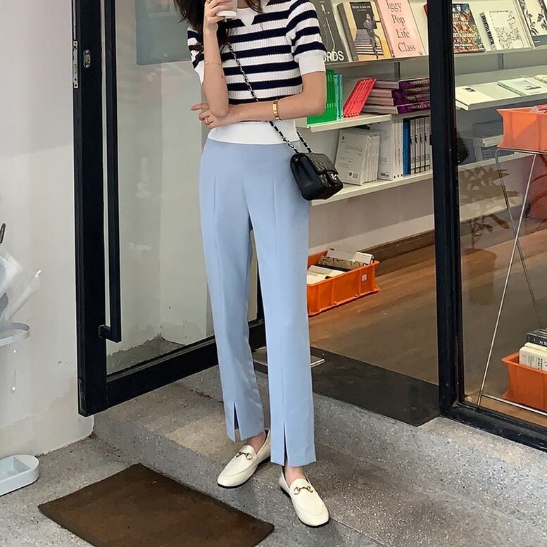 【▼動画あり▼】 細身シルエットでキレイ見えするフロントスリットパンツ センタープレスに裾をカットした縦ラインのデザインがこなれた印象です オフィススタイルとしてもお出かけ着としてもトレンド感があり活躍する一枚 ■商品コード P220444 ■カラー ブラック ブルー ■サイズ(cm) S パンツ丈:87 ウエスト:64 ヒップ:85 M パンツ丈:87 ウエスト:68 ヒップ:90 L パンツ丈:88 ウエスト:72 ヒップ:95 XL パンツ丈:89 ウエスト:76 ヒップ:100 〇サイズは採寸方法により1-3㎝ほど誤差がある場合がございます。 ■素材 ポリエステル スパンデックス 混紡 ■送料 15,000円以上のご購入で送料無料とさせていただきます。 ■商品発送について 当店の商品は海外からのセレクト商品となります。 到着まで10日~20日程度いただいています。 ご注文後に商品を確保し検品発送いたします。 在庫切れの際はご連絡させていただきます。 【商品に関する注意点】 ・お手持ちのパソコンやスマホ機器の違い及び写真撮影環境により商品の色の見え方に差が生じる場合がございます。 ・サイズは買付け先の生産表記ですが測り方により1-3㎝ほど誤差がある場合がございます。 ・海外発送のセレクト商品のためお客様都合によるキャンセル・返品は承っておりません。サイズ等ご確認の上ご注文下さい。 ・簡易包装にてお送りしております。予めご了承ください。 -------------------------------------------------- ご購入の前に必ずショップ情報をご確認くださいませ https://graces.fashionstore.jp/about --------------------------------------------------