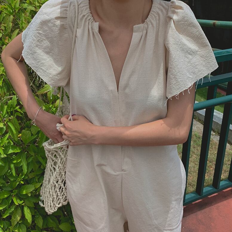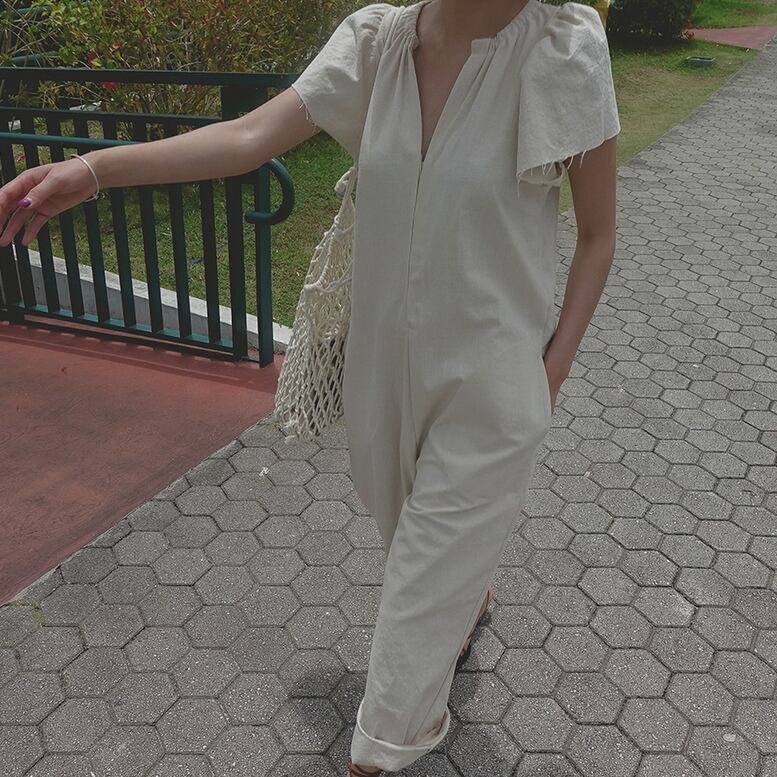 ゆったりとしてリラックスした雰囲気を演出するパンツオールインワン すっきりした顔立ちを印象付けるタックスキッパータイプのネックがポイント 立体感のあるフレアスリーブが可愛らしさをプラスして二の腕をカバーします ■商品コード AL220613 ■カラー ブラック ベージュ ■素材 綿50% 麻50% ■サイズ(cm) S 肩幅:46 胸囲:102 ヒップ:104 渡り:54 総丈:125 袖丈:21 M 肩幅:48 胸囲:104 ヒップ:106 渡り:56 総丈:126 袖丈:22 L 肩幅:50 胸囲:106 ヒップ:108 渡り:58 総丈:127 袖丈:23 XL 肩幅:52 胸囲:108 ヒップ:110 渡り:60 総丈:128 袖丈:24 〇サイズは採寸方法により1-3㎝ほど誤差がある場合がございます。 ■送料 15,000円以上のご購入で送料無料とさせていただきます。 ■商品発送について 当店の商品は海外からのセレクト商品となります。 到着まで10日~20日程度いただいています。 ご注文後に商品を確保し検品発送いたします。 在庫切れの際はご連絡させていただきます。 【商品に関する注意点】 ・お手持ちのパソコンやスマホ機器の違い及び写真撮影環境により商品の色の見え方に差が生じる場合がございます。 ・サイズは買付け先の生産表記ですが測り方により1-3㎝ほど誤差がある場合がございます。 ・海外発送のセレクト商品のためお客様都合によるキャンセル・返品は承っておりません。サイズ等ご確認の上ご注文下さい。 ・簡易包装にてお送りしております。予めご了承ください。 -------------------------------------------------- ご購入の前に必ずショップ情報をご確認くださいませ https://graces.fashionstore.jp/about --------------------------------------------------